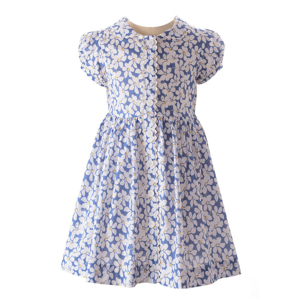 Blue Floral LS Button-front Dress Rachel Riley USBlue Floral LS Button-front Dress Rachel Riley US