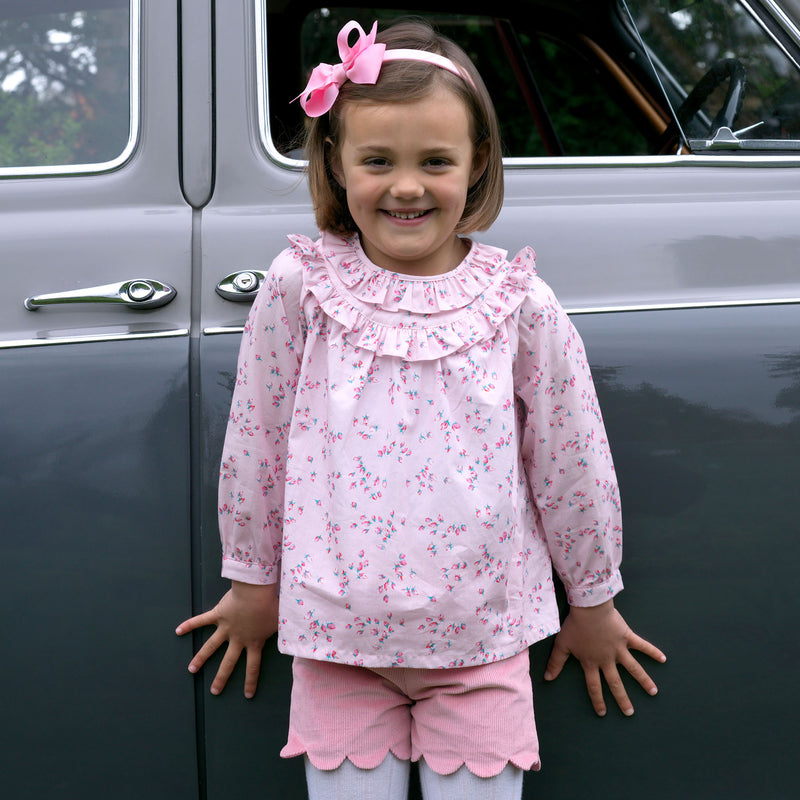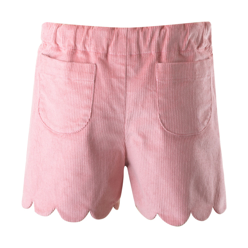 Get ready to fall in love with our Scalloped Corduroy Shorts! These powder pink shorts feature a charming scalloped finish at the hems, as well as an elasticated waist and patch pockets at the back. Perfect for layering with our tops, cardigans, and tights for an adorable and cozy look.