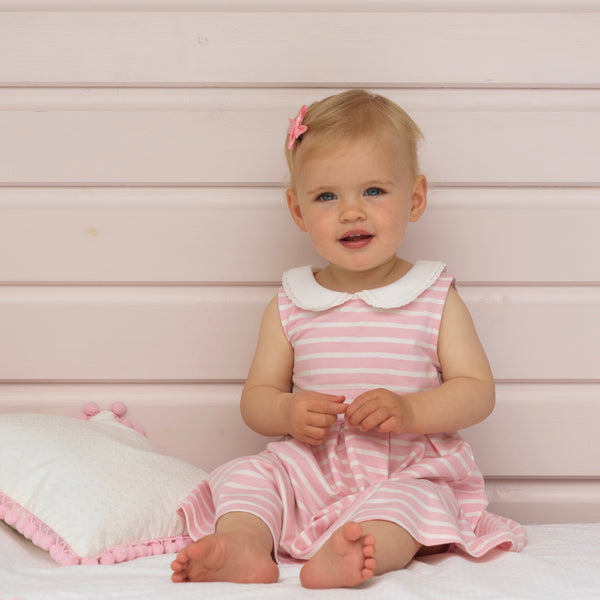Baby Girl Pink Breton Stripe Jersey Dress Rachel Riley USBaby Girl Pink Breton Stripe Jersey Dress Rachel Riley US