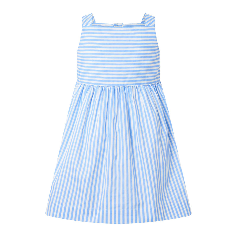 Elevate your summer style with our Blue Striped Button-Front Sun Dress! This dress boasts a charming blue and ivory stripe design, along with a fitted bodice and gathered skirt for a flattering silhouette. The button-front closure and wide straps make it effortless to wear, while the pearl button accents on the matching patch pockets add a touch of elegance. Ideal for any summer affair! Dress also comes in Pink.