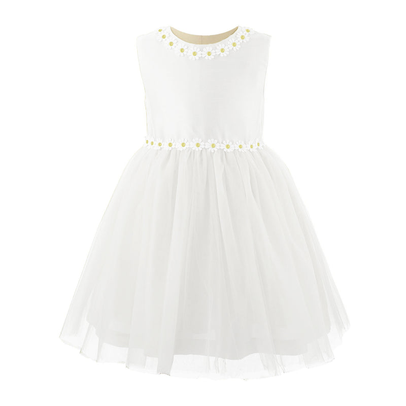 New! Experience the magic of a princess with our stunning Daisy Tulle Dress. In a classy ivory hue, this ballerina-style dress features a fitted sleeveless body and a full tutu skirt made of layers of tulle and organza. The daisy trims on the waist and neckline add a touch of whimsy to this perfect party dress. Perfect choice for flower girls!