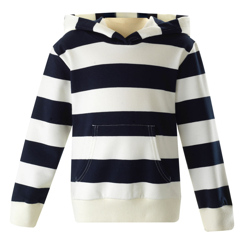 New! This lightweight hoodie is perfect for spring days. Featuring a playful maxi stripe, it also includes a convenient kangaroo pocket and hoodie for extra warmth. Stay stylish and cosy with this versatile sweater.